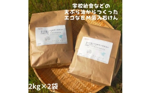 学校給食などの天ぷら油が大変身!地球に優しいエコなEM菌入石けん 海の京都 京丹後からお届け/粉石けん4kg KG00005