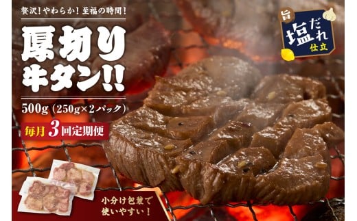 【定期便】【訳あり】贅沢!やわらか!至福の時間!!厚切り塩だれ牛タン!!500g(250g×2パック)【定期便 毎月×3回】 YK00472