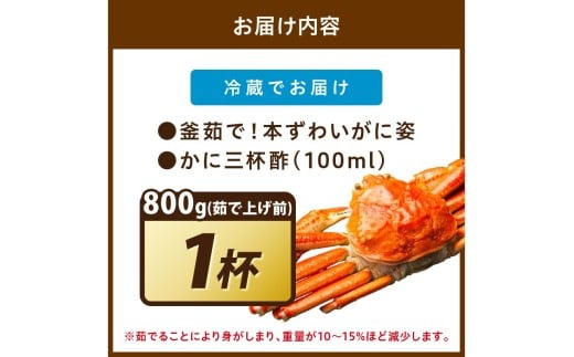 【大好評!カニ酢付き】訳あり!釜茹で!特大本ずわいがに姿 800g×1杯 YK00487
