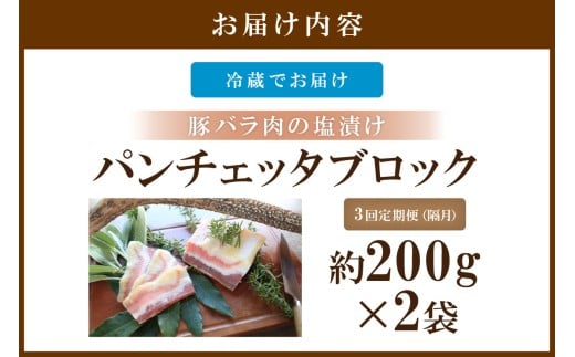 【定期便 隔月×3回】パンチェッタブロック(豚バラ肉の塩漬け)約200g×2袋 豚バラブロック ブロック肉 塊肉 豚肉 ブタ肉 豚 豚バラ パンチェッタ 無添加 熟成 生ベーコン 国産 NI00024