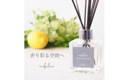 ・リードディフューザー mobilier フォレスト[オイル90ml 1本 ガラスボトルスクエア 1点 リードスティックブラウン 10本]
