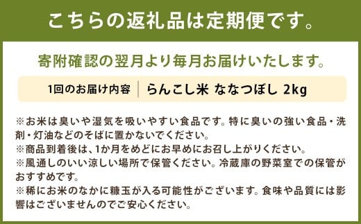 【6ヶ月定期便】らんこし米 ななつぼし 2kg【2024年9月下旬発送開始予定】
