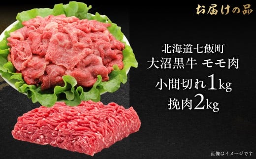 大沼黒牛小間切れ(モモ1kg)・挽肉2kgセット 【ふるさと納税 人気 おすすめ ランキング 北海道ブランド牛 大沼黒牛 黒毛和牛 冷凍 小間切れ 細切れ モモ ひき肉 挽肉 おいしい 北海道 七飯町】 NAM016