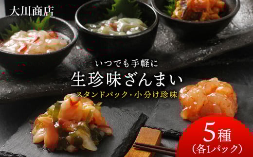 いつでも手軽に生珍味!5種各1袋セット ほたて 北寄 貝 ウニ エビ タコ 北海道 積丹 セット 食べ比べ 珍味 つまみ 《 大川商店 》