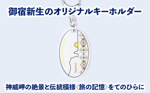 積丹 新生オリジナルキーホルダー(神威岬×アイヌ柄 黄茶)(大)