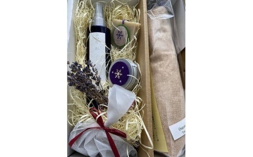 鷹栖町産ラベンダー『丘紫(おかむらさき)』のオイルをふんだんに使った記念品です