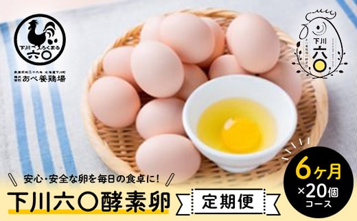 <定期便>【Mサイズ 20個×6ヶ月コース】20個(18個+割れ補償2個) 安心・安全な『下川六〇酵素卵』を毎日の食卓に! 下川ろくまる あべ養鶏場 割れ補償付き ブランド卵 たまご 玉子 タマゴ ふるさと 納税 国産 北海道産 北海道 下川町 F4G-0298