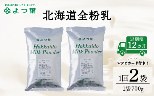 【定期便12カ月】よつ葉 北海道 全粉乳 700g x 2 袋