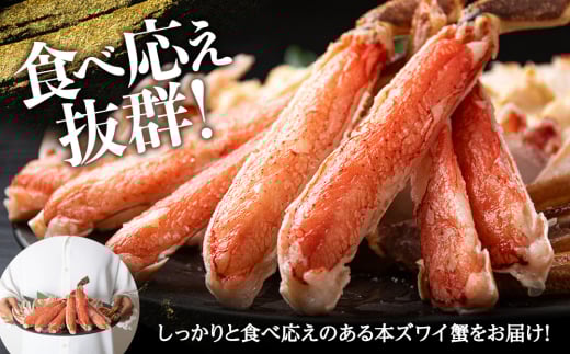 水分量が多くジューシーな食感が特徴の紅ズワイと比べ、「本ズワイ」は「ふっくらとして食べ応えのある」身が特徴です。上品でクセの無い甘みでどなたさまにも食べやすいカニ種です。
