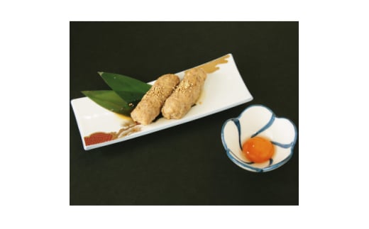 岩手県は二戸市自慢のブランド肉である、佐助豚、菜彩鶏、短角牛を、地元で腕を振るう料理人達で構成する「にのへ料理人会」のメンバーが、それぞれの旨味を活かし、独自のバランスで組み合わせた、プレミアム食材での「豚肉(ぶっ)・鶏肉(と)・牛肉(べ)」を使用した「つくね」です。