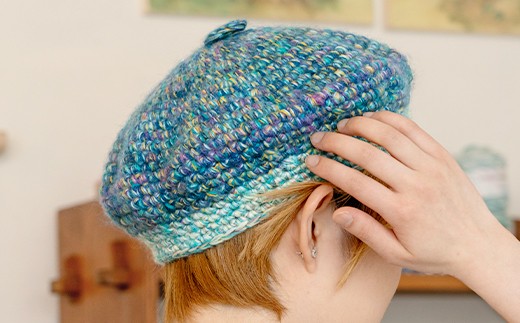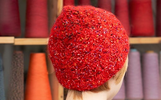 山辺町のニット工場で生まれた、残糸で引き揃えている毛糸です。
