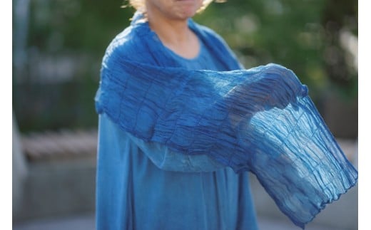 【数量限定】藍染めストール(絹)乾燥葉染め【ストール 絹 ギフトラッピング 贈り物 プレゼント 藍 手作り ハンドメイド 福島 家族 友人 楢葉 福島 ギフト プレゼント 】