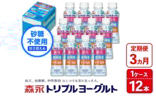 【3ヵ月定期便】トリプルヨーグルト 砂糖不使用 ドリンクタイプ 1ケース(12本)|ふるさと納税 ヨーグルト 飲むヨーグルト 乳酸菌 健康サポート 糖質控えめ 血圧対策 内臓脂肪 血糖値管理 甘さ控えめ 冷蔵便 健康志向 ギフト お得セット 森永 森永乳業