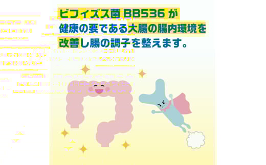 ・ビフィズス菌BB536が健康の要である大腸の腸内環境を改善し腸の調子を整えます。