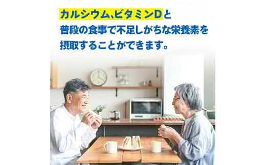 ・カルシウム、ビタミンDと普段の食事で不足しがちな栄養素を摂取することができます。