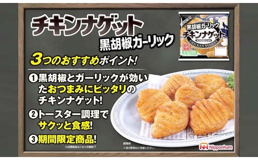 期間限定 チキンナゲット 黒胡椒ガーリック (116g×6袋) | チキン ナゲット 冷蔵 チルド 温めるだけ 日ハム 日本ハム ニッポンハム ブラックペッパー オーブントースター レンチン レンジ調理 お弁当 弁当 おかず 惣菜 ロングセラー