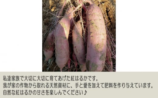 我が家の作物から取れる天然資材に、手と愛を加えて肥料を作り与えています。自然な紅はるかの甘さを楽しんでください♪