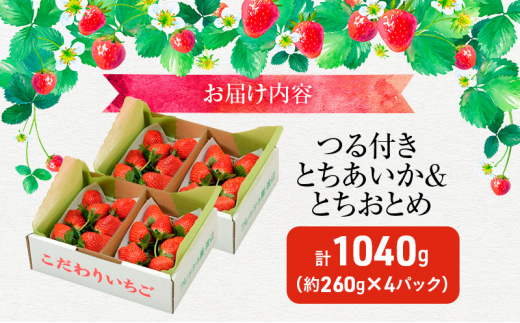 とちあいか260g/パック×2、とちおとめ260g/パック×2、(計4パック)、段ボール箱入り、原産地:栃木県鹿沼市