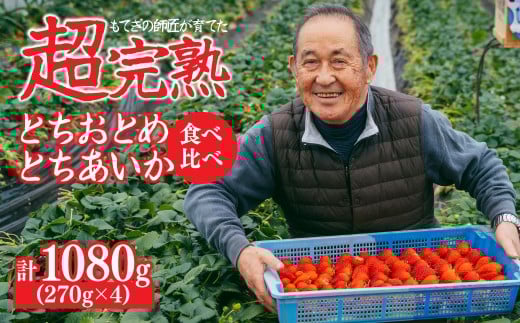 【先行受付:3月以降発送】いちご「茂木完熟いちご」師匠が育てた朝採れとちおとめ × とちあいか レギュラーサイズ 食べ比べセット 約270g × 各2パック 合計約1080g | いちご イチゴ 苺 とちあいか とちおとめ 甘い あまい 完熟 果物 フルーツ くだもの 旬 産地直送 栃木県産 関いちご園 栃木県 茂木町