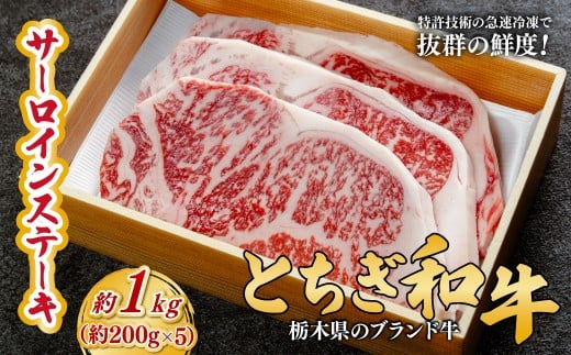 とちぎ和牛の厚切りサーロインステーキ 1kg (200g×5枚)【栃木県共通返礼品】 | 牛肉 肉 お肉 厚切り サーロイン ステーキ 柔らかい 産地直送 国産 国産牛 和牛 赤身 霜降り 希少 旨味 旨み 熟成 急速冷凍 テクニカン テクニカン社 スキンパック 真空パック 真空包装 コトラミートカルチャ 栃木県 茂木町