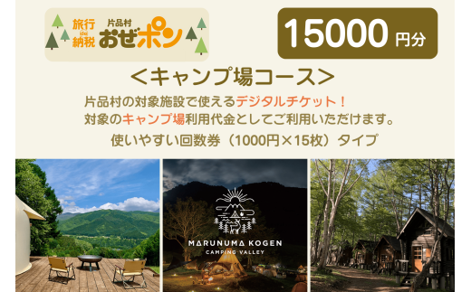 「おぜポン」キャンプ場コース15000円分(1000円×15枚)