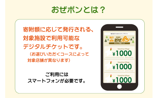 〇「おぜポン」キャンプ場コース15000円分(1000円×15枚)