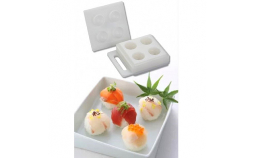 寿司ネタとシャリを握らずに、お店のような仕上がりのてまり寿司が1度に4つ作れる優れもの。
