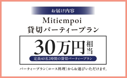 Mitiempo貸切パーティープラン30万円相当(最大40名様まで)