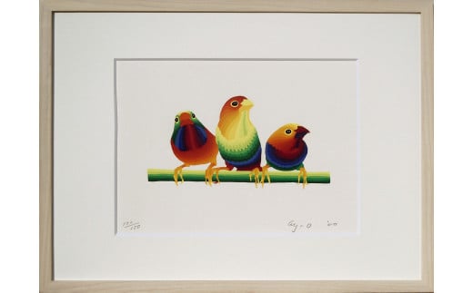 当版画工房で制作したオリジナル版画作品。新品額装。制作部数/限定150部。額の外寸/約31×40cm