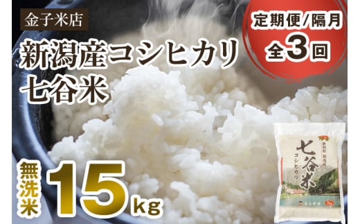 【令和7年産新米先行予約】【定期便3回隔月お届け】老舗米穀店が厳選 新潟産 従来品種コシヒカリ「七谷米」無洗米15kg(5kg×3)〈10月上旬から順次出荷〉 窒素ガス充填パックで鮮度長持ち 金子米店