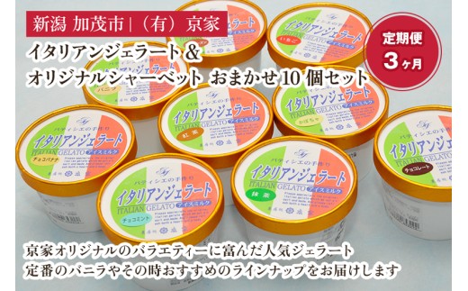 【定期便3ヶ月毎月お届け】京家のイタリアンジェラート&オリジナルシャーベット おまかせ10個セット アイス アイスクリーム 氷菓 スイーツ ひんやり 有限会社京家 加茂市