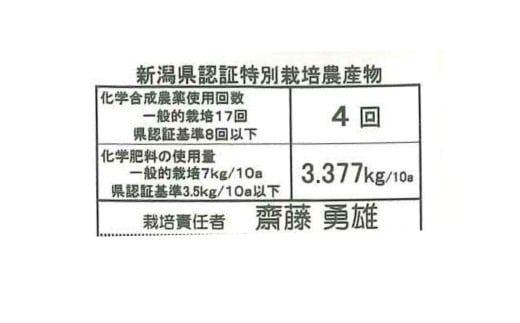 ・新潟県認証 特別栽培米 コシヒカリ 5kg