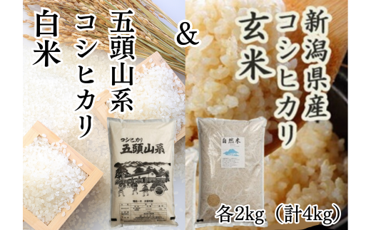 【令和7年産新米予約】「米屋のこだわり阿賀野市産」 コシヒカリ玄米&白米 各2kgセット 10月下旬より順次発送 1E10018
