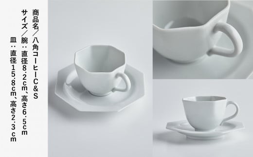 九谷焼 磁器白九谷「型打 - 八角コーヒー カップ&ソーサー」セット 珈琲 紅茶