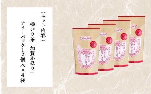 7. 【老舗の味!】棒いり茶《加賀かほり》ティーパック 3g×12個 入り 4セット×3回 定期便 ほうじ茶 加賀棒茶 棒いり茶 番茶 石川県 小松市