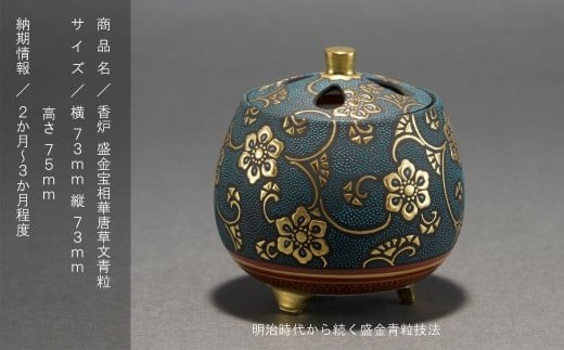 明治時代から続く盛金青粒技法を用いた香炉