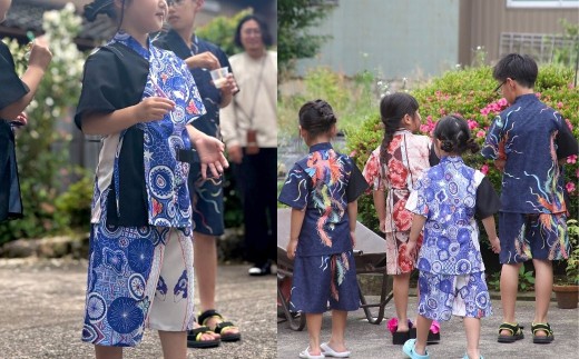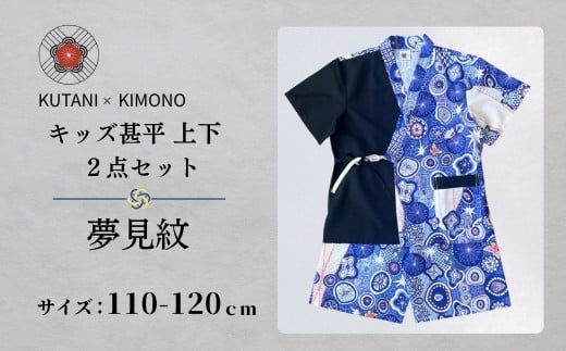 6. [KUTANI×KIMONO] キッズ甚平 上下2点セット 夢見紋(サイズ:110-120cm)