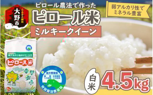 【先行予約】【令和7年産 新米】ミネラル豊富!弱アルカリ性のピロール米 ミルキークイーン 白米 4.5kg 化学肥料5割以下・減農薬【11月より準備出来しだい発送】