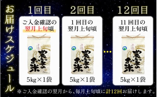 【令和7年産 新米】【12ヶ月定期便】星降るまち 越前大野の「満天コシヒカリ」白米 5kg × 12回 計 60kg 農薬・化学肥料50%以上カットの特別栽培米 農家直送 単一原料米 大野市