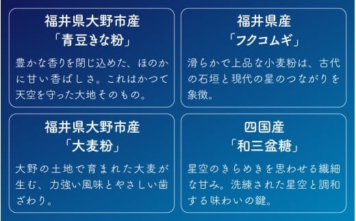 福井県大野市の星空とお城をイメージしたパッケージと地産焼き菓子です
