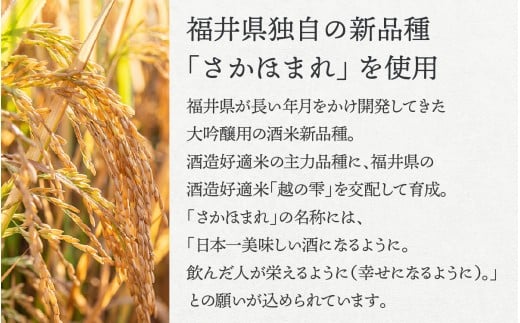 福井県独自の酒米新品種さかほまれを使用し、原酒のまま無濾過で贅沢に瓶詰めしました