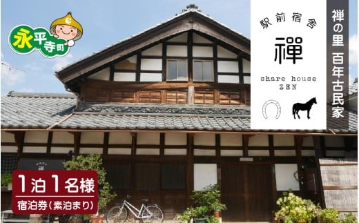 禅の里の百年古民家「駅前宿舎禪」1泊1名様 宿泊券 [B-046001] / 永平寺 福井 北陸