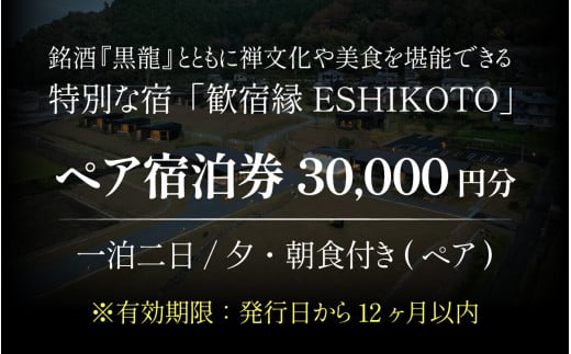 銘酒 黒龍と共に禅文化や美食を堪能できる 「歓宿縁ESHIKOTO」宿泊チケット