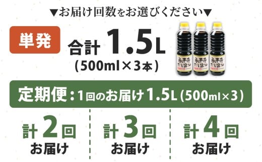 【4回お届け】永平寺だし醬油 500ml×3本セット【4回定期便】【お届け対象月 10月,1月,4月,7月】/ 濃縮だし 万能調味料 だし 醤油 しょうゆ ボトル 出汁 出汁醤油 だし醤油 醬油
