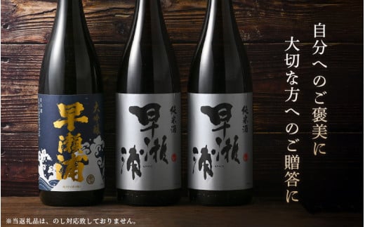 【早瀬浦】大吟醸 1800ml × 1本 & 純米酒 1800ml × 2本 セット【入手困難 飲み比べ 日本酒 地酒 福井 美浜 早瀬 フルーティ 男酒 硬水 ミネラル 希少 ご褒美 家飲み 敬老の日 プレゼント】[m16-g002]