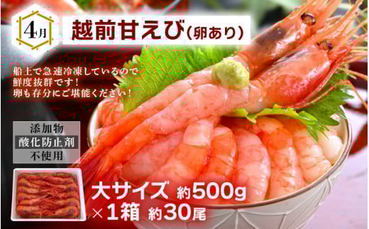 ・4月:越前甘えび(卵あり) 大サイズ 約500g × 1箱 約30尾