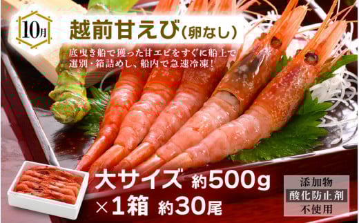 ・10月:越前甘えび(卵なし) 大サイズ 約500g × 1箱 約30尾