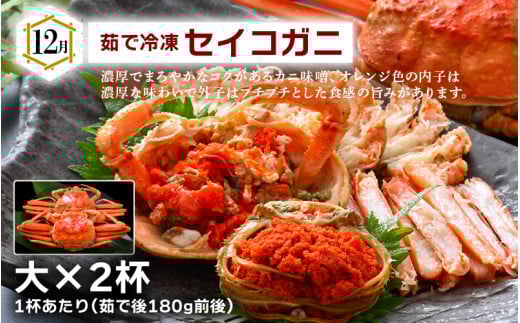 ・12月:茹で冷凍セイコガニ大×2杯(茹で後180g前後)