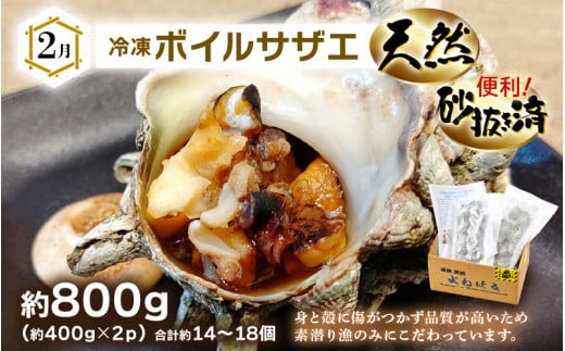 ・2月:冷凍ボイルサザエ[約800g(約400g×2パック)] 約14~18個