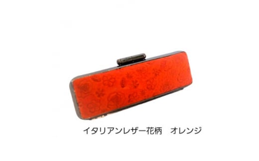 7. はんこの産地で作られたイタリアンレザー花柄入りオレンジ印鑑ケース 18mm用【1239165】